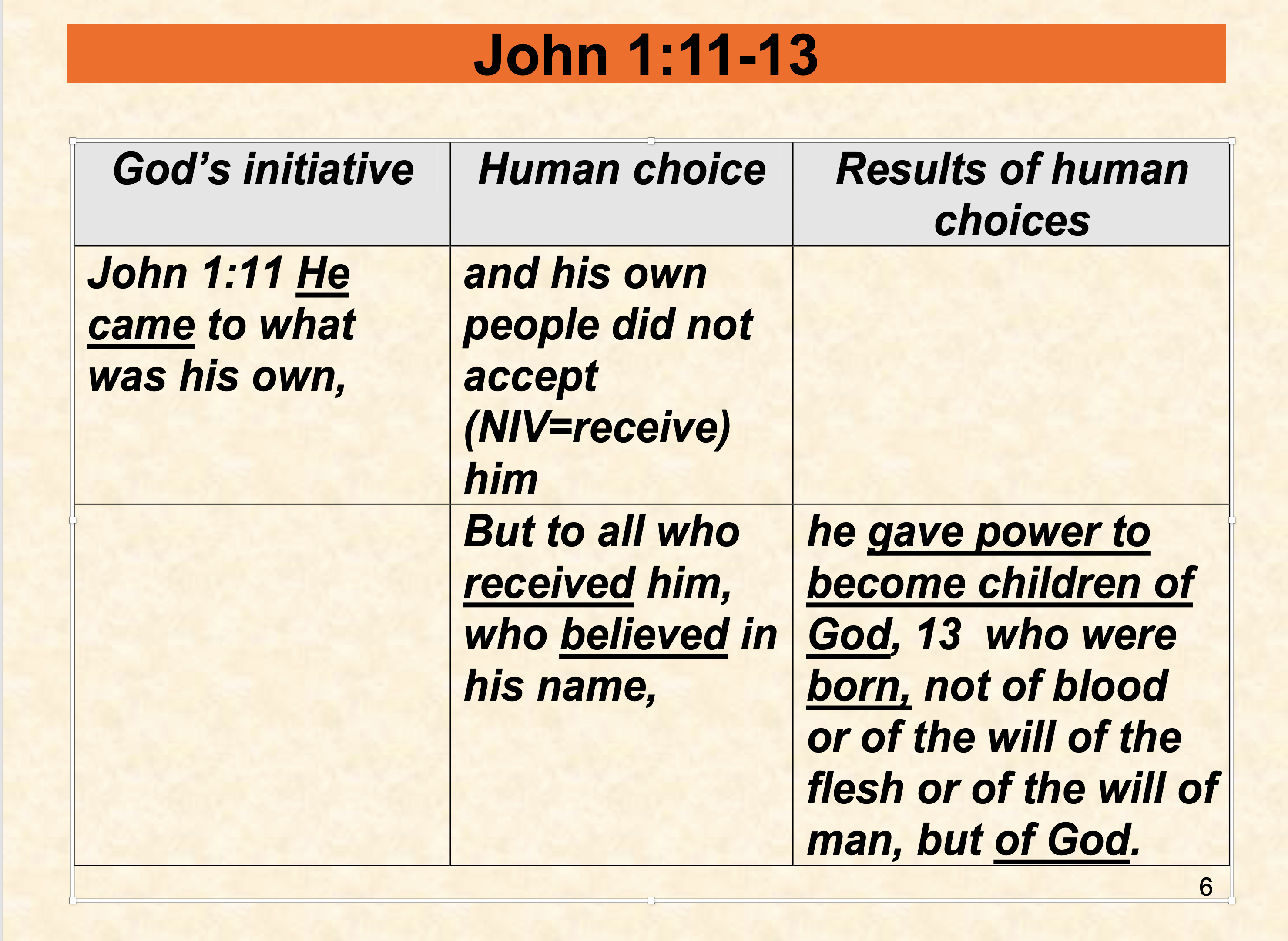 • John 6:44 “No one can come to me unless the Father who sent me draws him